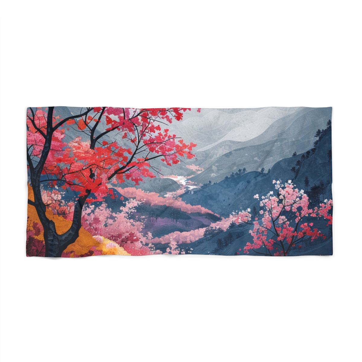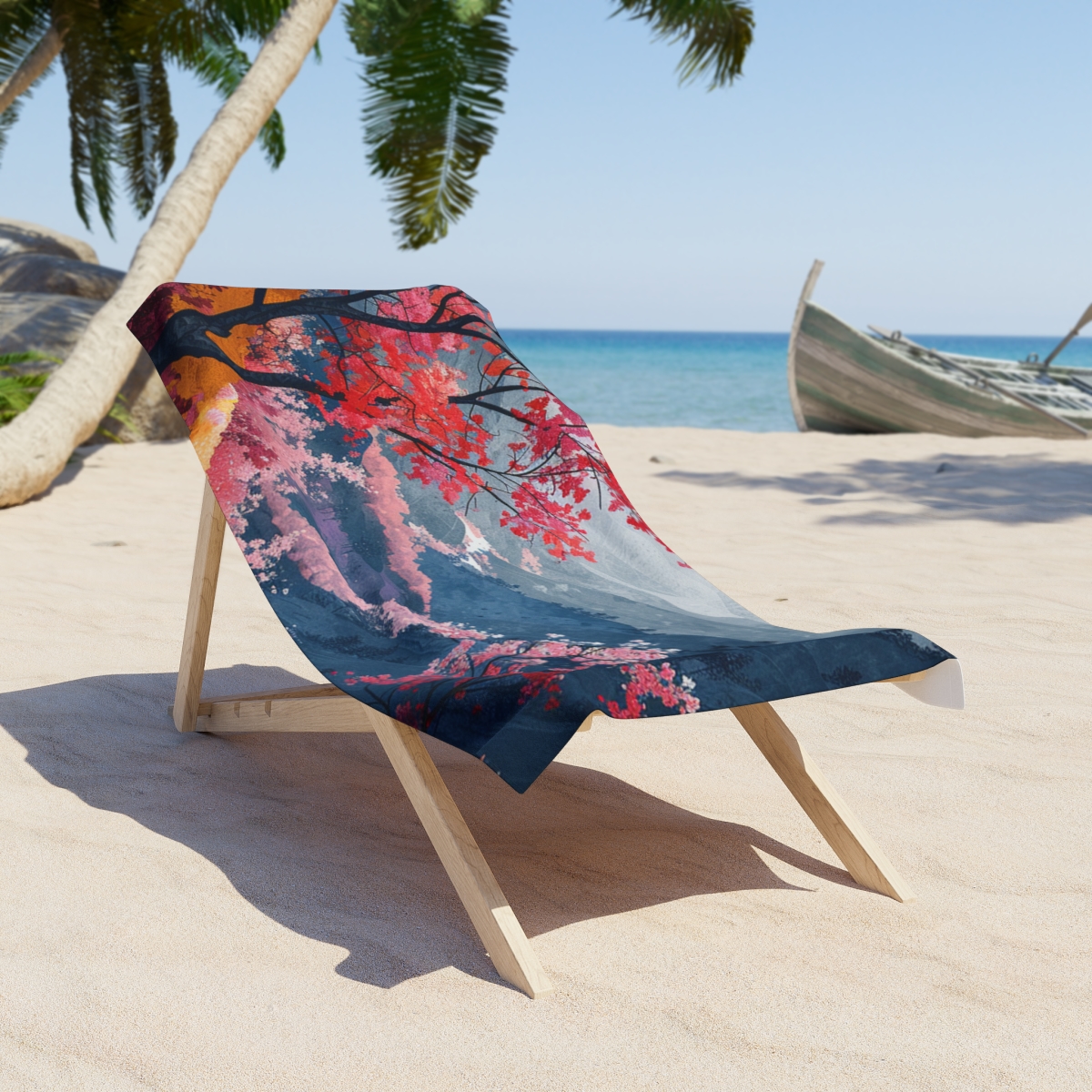 Pastel Mosaic Nature Vector Art Beach Towel: Boho Chic Design for Stylish Summer Lounging
